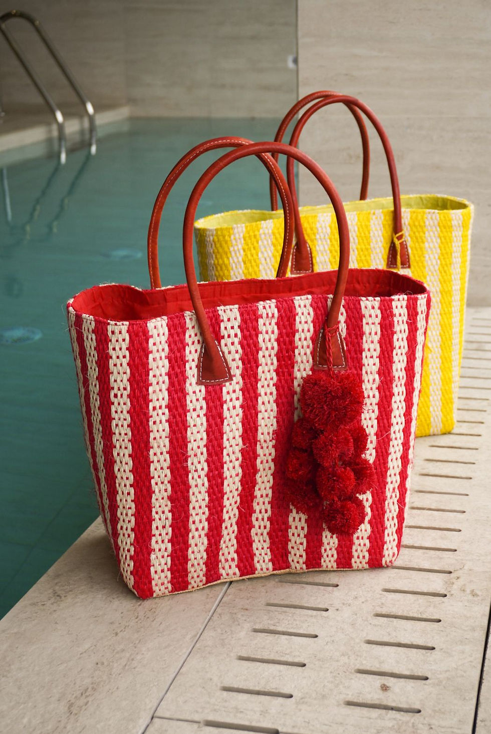 Bolso Sisal Mediano Rayas Rojas